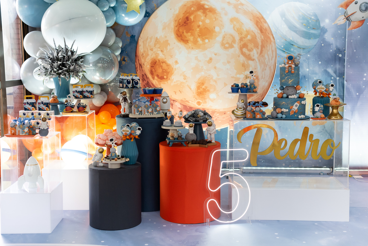 Uma tarde linda pra comemorar os 6 anos do Pedro, a decoração com o tema Galáxia estava maravilhosa e do jeitinho que ele pediu.